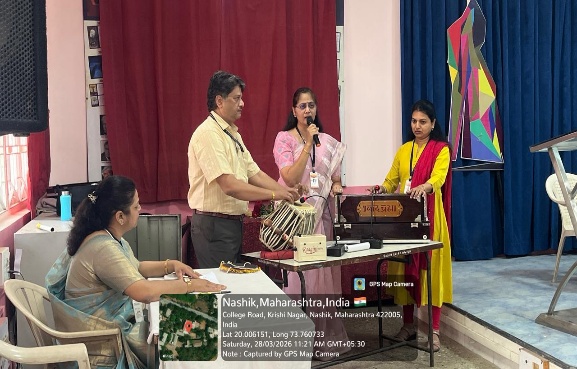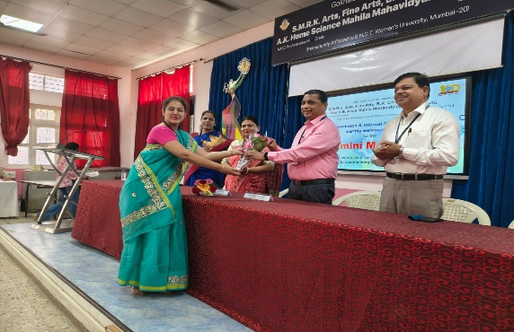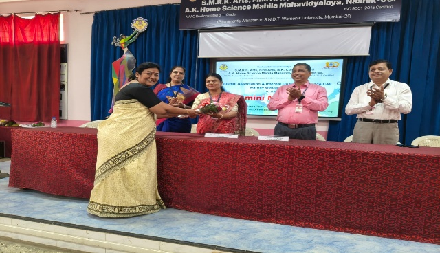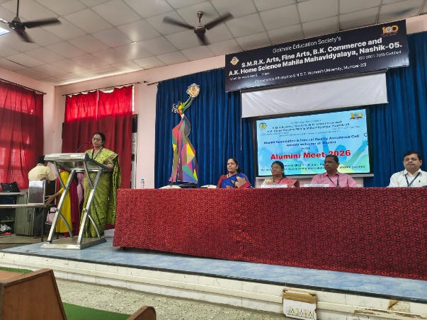 Felicitation of Vice Prin.Dr.Nitin Songirkar at the hands of Mrs.Vaishali Gaikwad Principal Dr.Mrs.Sandhya Khedekar addressing the gathering